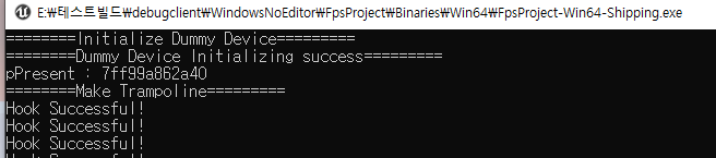 코드 빌드 후 DLL 인젝션 진행하여 함수 주소가 제대로 나오는지 확인하면