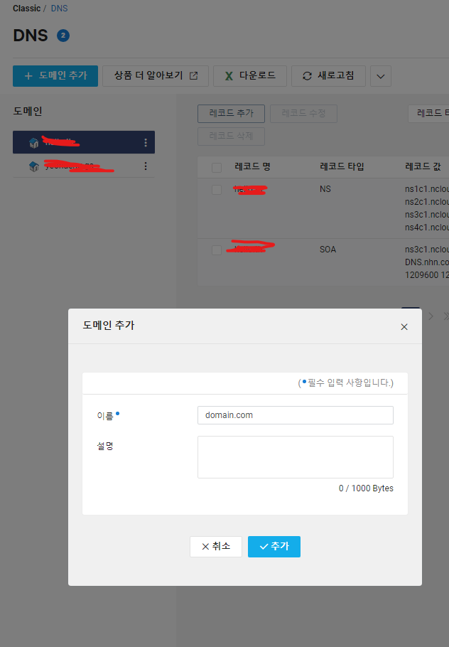 네이버 클라우드의 DNS 콘솔을 열어보면 원래는 아무것도 없을것이다.