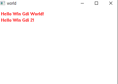 DrawText(hdc, L"Hello Win Gdi World!", -1, &rect, DT_SINGLELINE | DT_NOCLIP);