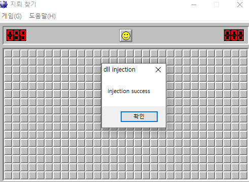 대상은 예전에 쓰던 지뢰찾기 게임. 정상 프로세스에 내가 만든 DLL을 인젝션하고, DLL이 인젝션되면 메시지 박스가 뜨게끔 해보자.