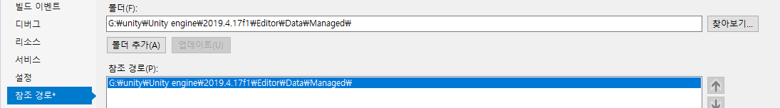 혹은, 프로젝트 속성 - 참조경로 에서 \Editor\Data\Managed 경로를 추가해줘도 된다.