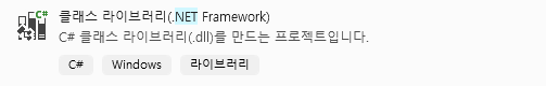 visual studio에서 .NET 프레임워크 클래스 라이브러리 프로젝트를 생성한다.