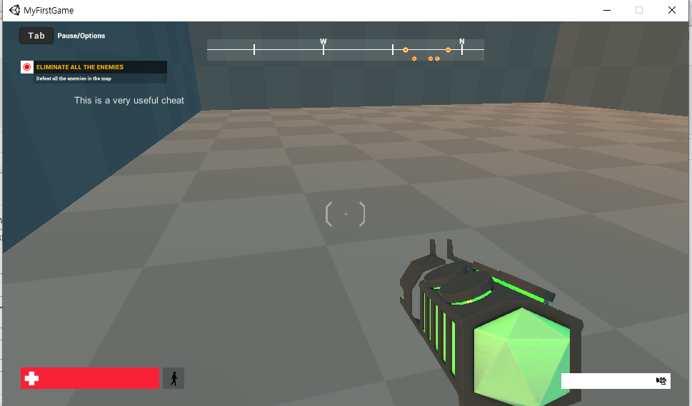 게임 화면에 "This is very useful cheat" 라는 문구가 출력된게 보인다. 아까 코드에 작성했던 텍스트 출력 함수가 제대로 동작한 것.