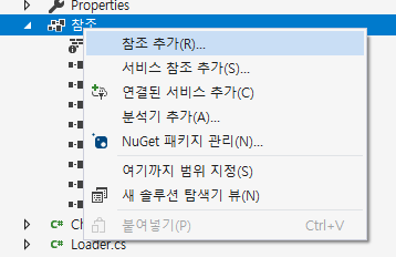 이후 기본값으로 설정된 Class1.cs 파일의 이름을 Loader.cs 로 변경해주고 Loader.cs의 내용을 작성해준다.