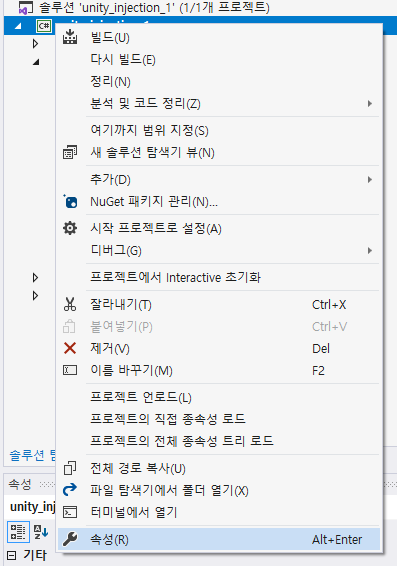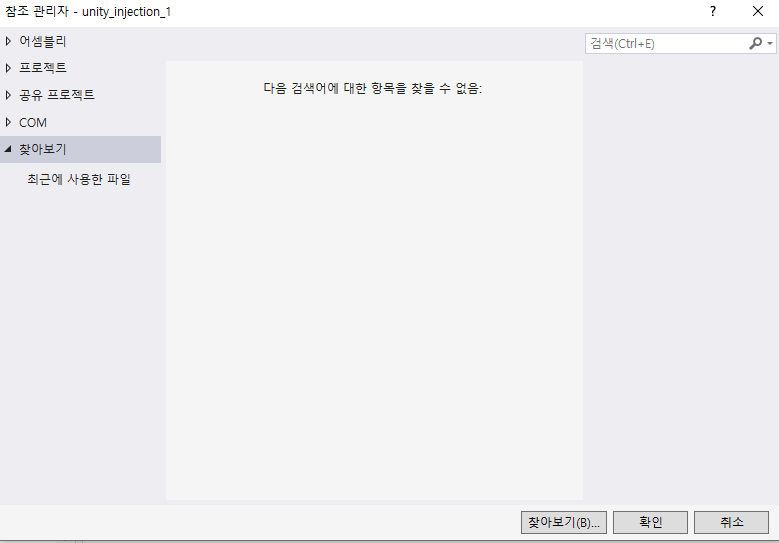 UnityEngine.dll 을 불러오기 위해 솔루션 탐색기 - 참조에 우클릭 - 찾아보기 - <유니티 설치경로>\Editor\Data\Managed 로 이동하여 UnityEngine.dll 과 UnityEditor.dll을 추가해주자.