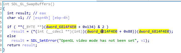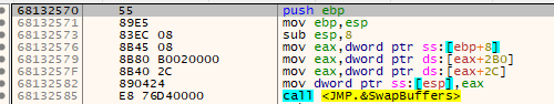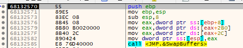 그냥 심볼이 빠져 있을 뿐, swapbuffer로 점프하는 구문이 들어있는 코드가 나온다.