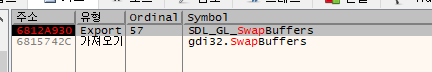 메모리에서 swapbuffer 함수의 주소를 찾아오려면 SDL.dll의 0x6814f4e0에 접근하여 포인터를 따라가면 되는 것.