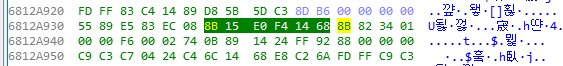 헥스로 보면 0x6814f4e0 라는 주소값이 고정으로 박혀있는게 보인다.