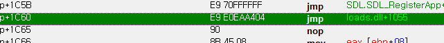 이제 원본 코드에서 트램폴린으로 점프하게 만드는 어셈블리를 덮어씌워야 한다.