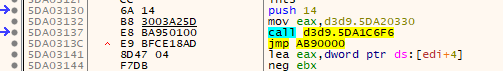 0x9C 0x60 0xe8 0x?? 0x?? 0x?? 0x?? 0x61 0x9d 0x?? ~~ 0xff 0x25 0x?? 0x?? 0x?? 0x??