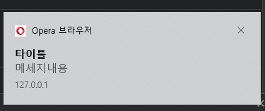 | onclose | 알림 닫을시 실행할 동작 명시 | 데스크톱상 이벤트 발생 조건을 모르겠음 |