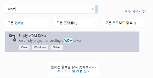 Visual Studio에서 프로젝트 새로 생성 - WDM Driver로 진행한다.