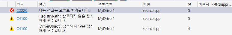 NT legacy style은 드라이버 설치를 지원하지 않기 때문에 설치파일인 .inf 파일은 솔루션 목록에서 삭제해줘야한다.