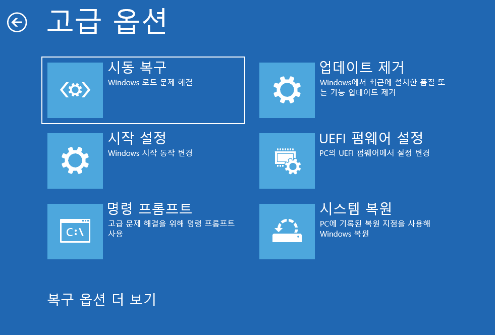 이걸로도 안되면 고급 시작옵션을 통해 설정해야한다.